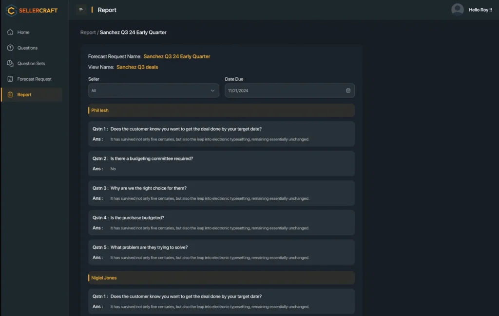 The Sellercraft Forecasting platform was designed to address the needs that he encountered in these technology firms, both large and small. The success of most sales teams depends largely on deal execution and that is where Sellercraft is squarely focused.